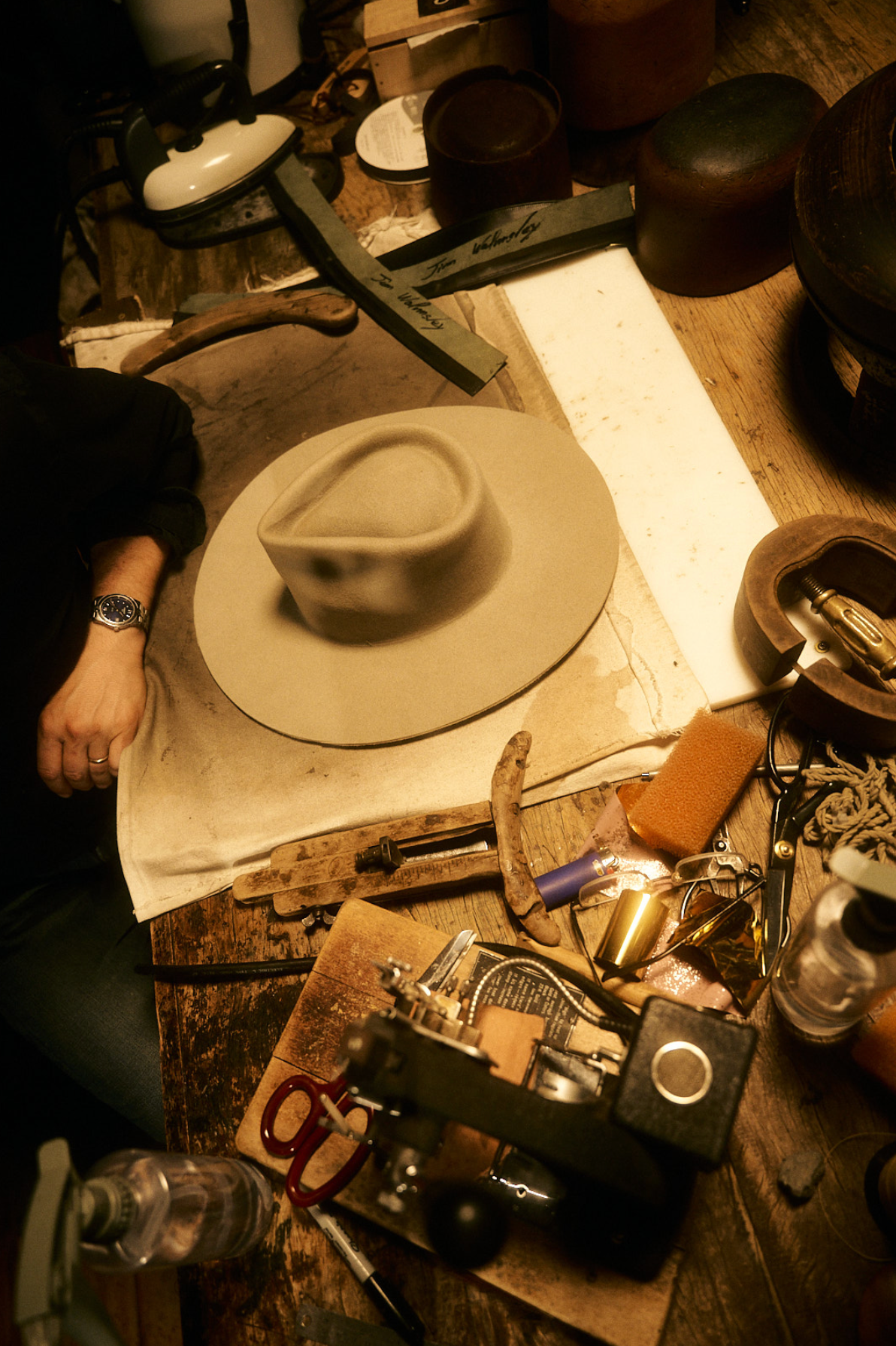 Hailing from Savoie, France, chapelier Pascal Baboulin has always been captivated by history and craftsmanship – particularly that of the American Old West. In 2000 he followed his dreams and interests and embarked on a journey throughout the Western United States, serendipitously settling in Arizona where he began his training in the longstanding art of hat crafting. From the beginning, Pascal knew this was his forte – and eventually started his own business in 2004 in Virginia City, Nevada. Over the years, Pascal has created thousands of fine hats according to his exacting methods and signature style which combines traditional European hatmaking techniques with more modern American ones; each and every hat a work of art.
