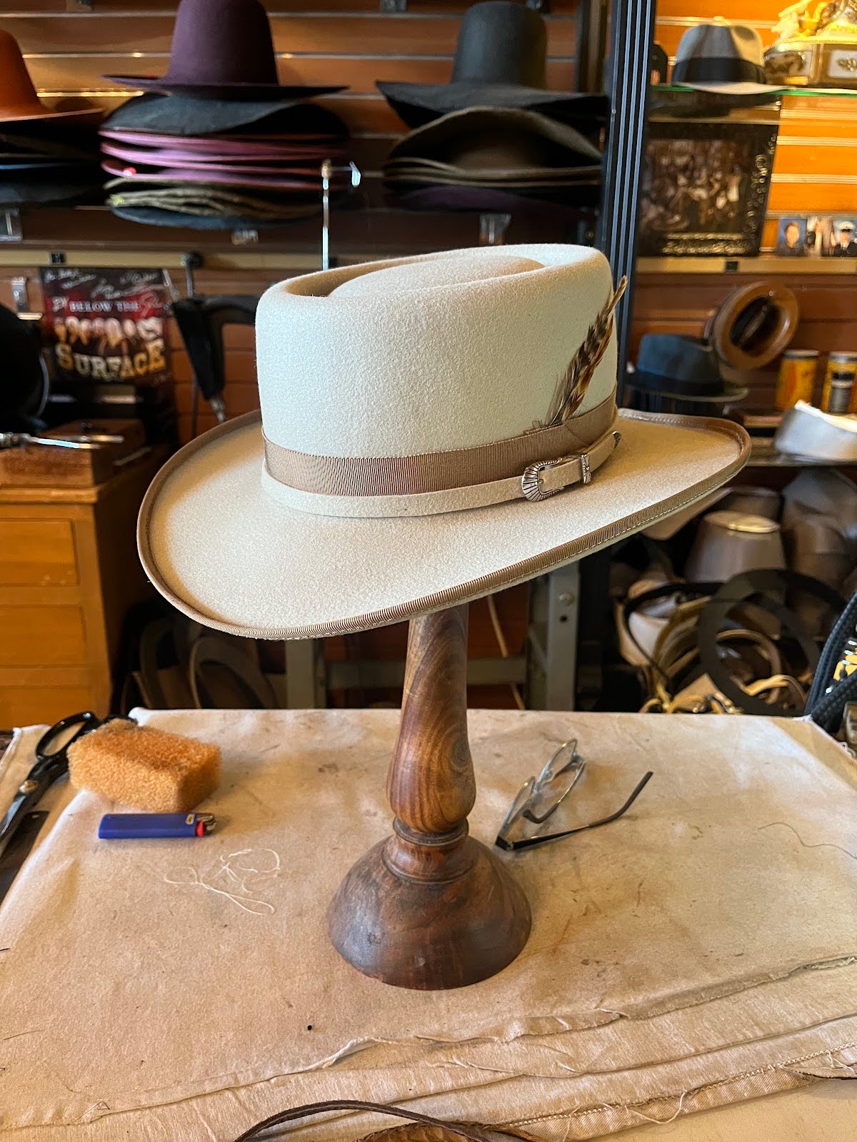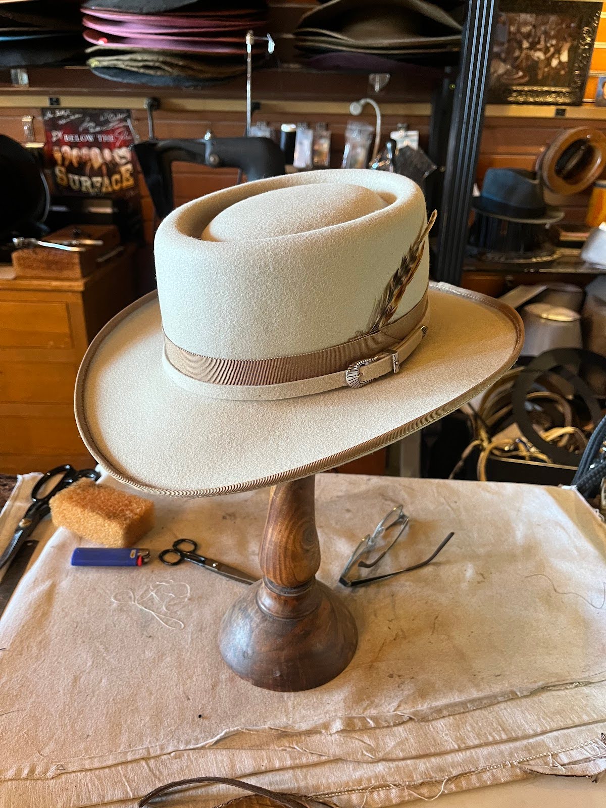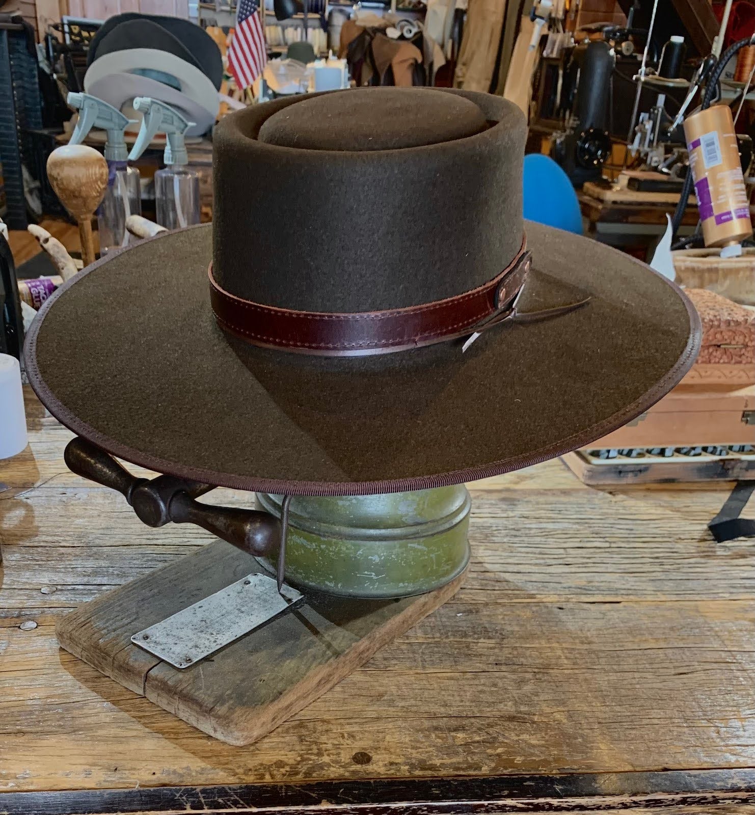 A well-known fact throughout the hat making world is that a man of good character selects his/her hat carefully and then makes it his/her own. This just the style of hat perfect for this type of individualistic expression.