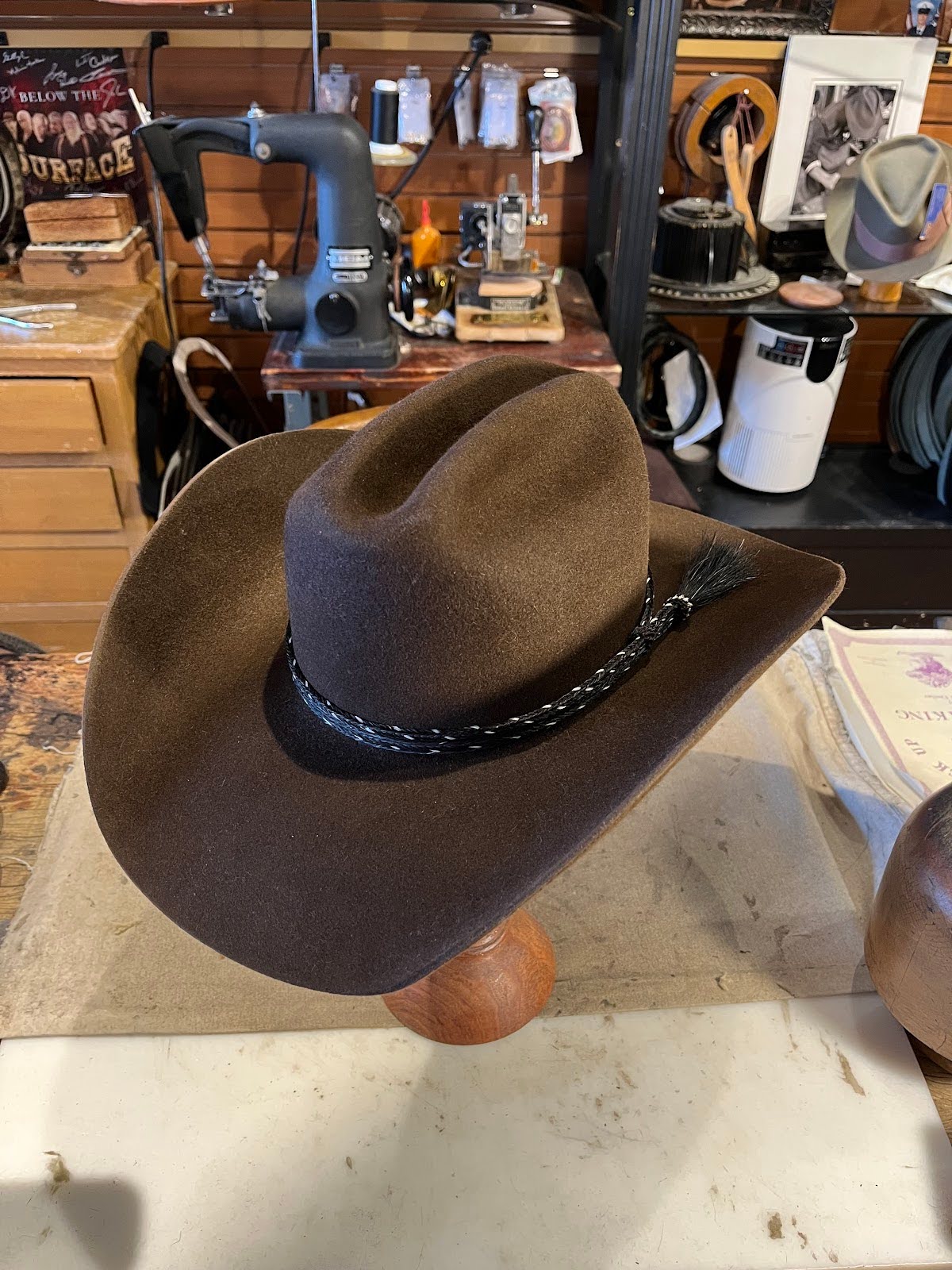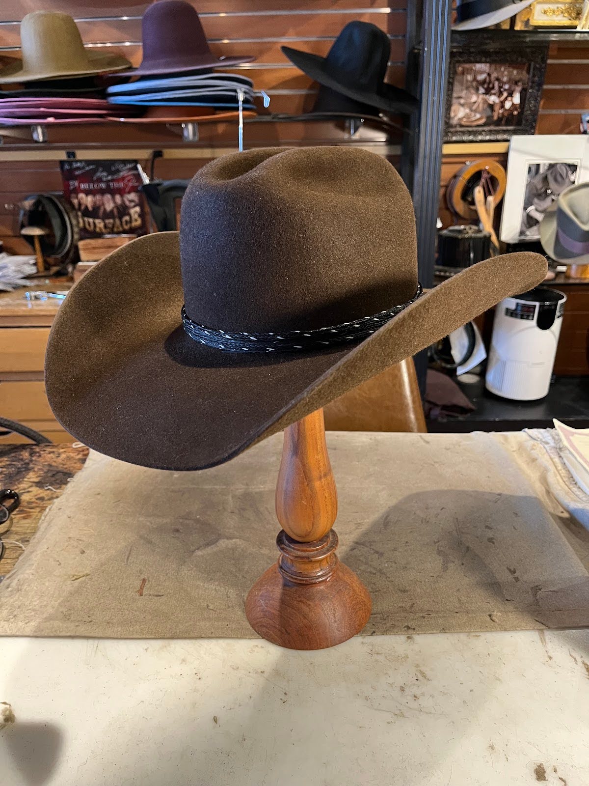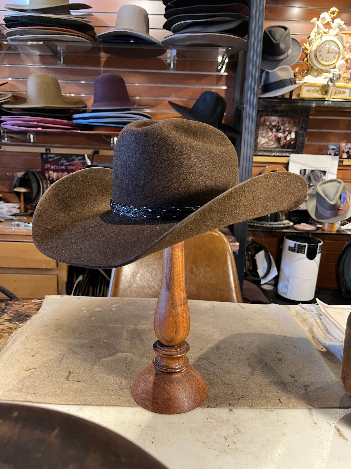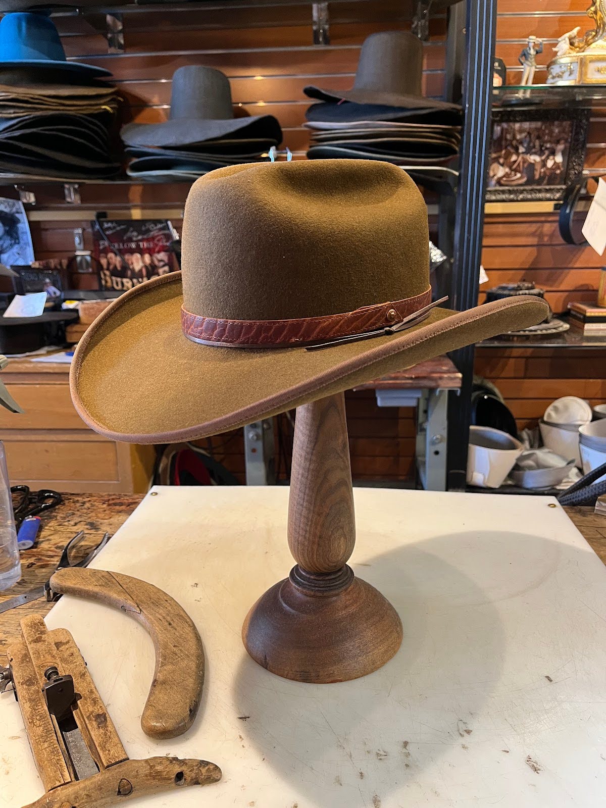The Cattleman is your typical Texan style cowboy hat. Folks also refer to it as the “Western”. Often seen on ranches and in rodeos, it is the perfect riding hat for both men and women who tend toward the traditional western look.